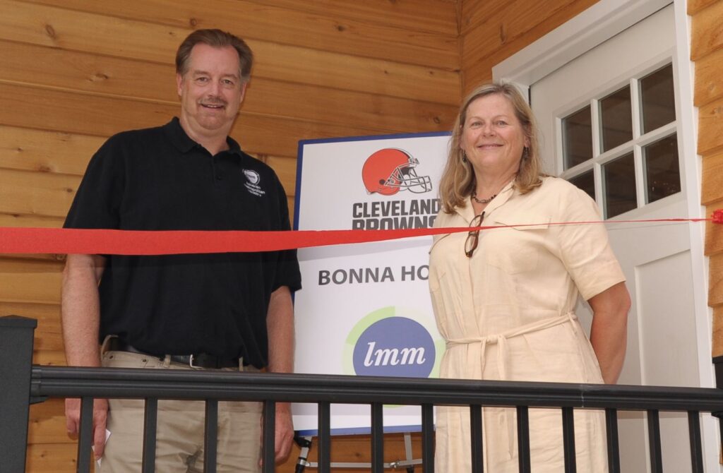 LMM worked with the Cuyahoga Land Bank and St. Clair Superior Development Corporation (SCSDC) to acquire its first house in the project, a duplex on Bonna Avenue. The house was one of many vacant and abandoned homes in the Cuyahoga Land Bank inventory scheduled for demolition. With the help of a significant sponsorship from the Cleveland Browns, LMM spent three years renovating the house and recently held a ribbon-cutting ceremony celebrating its completion. Through its Family Stability Fund (FSF), LMM will serve as the landlord of the property and offer rent that does not exceed 30% of a family’s monthly income.